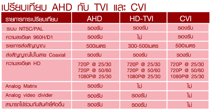 เปรียบเทียบ AHD กับ TVI และ CVI